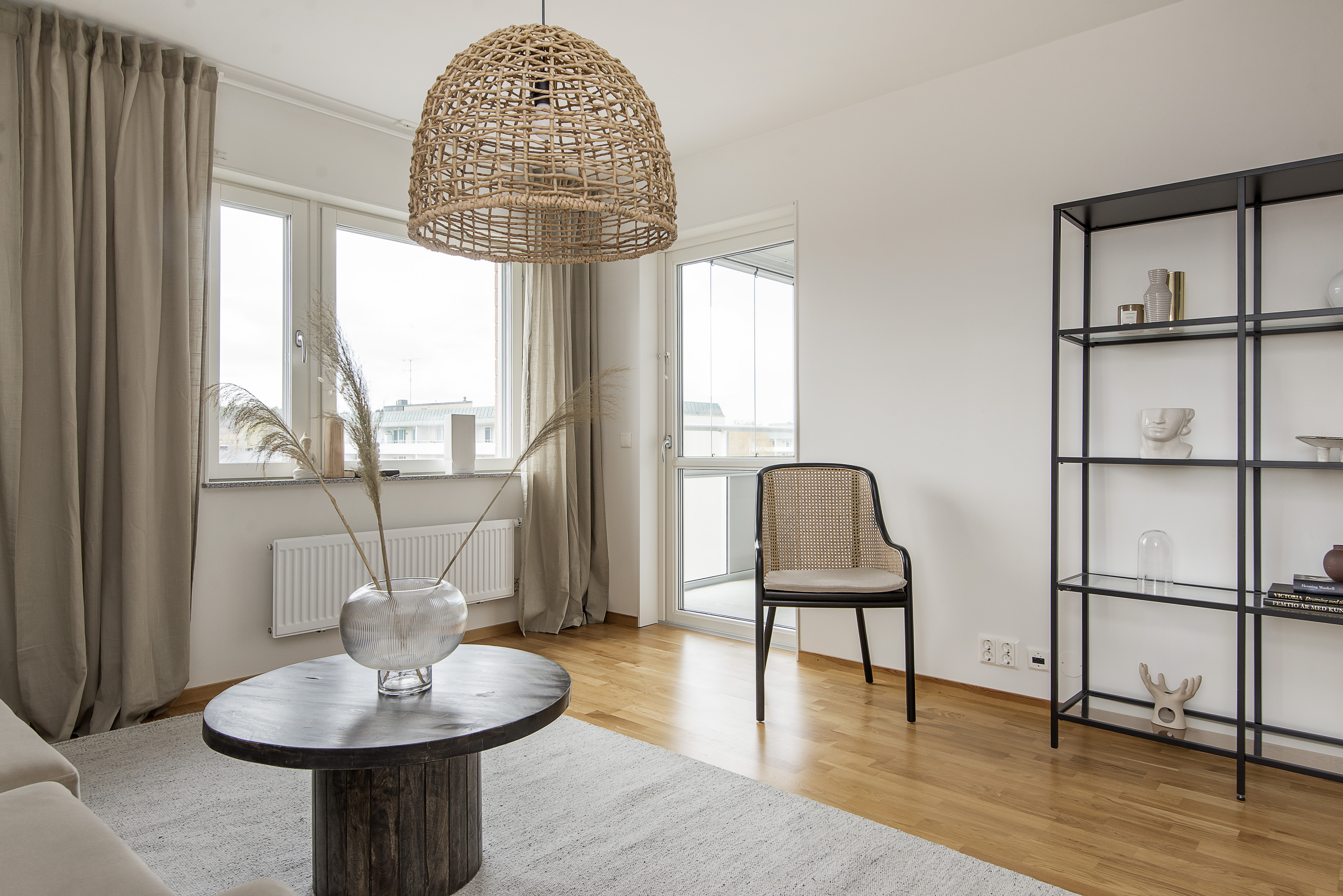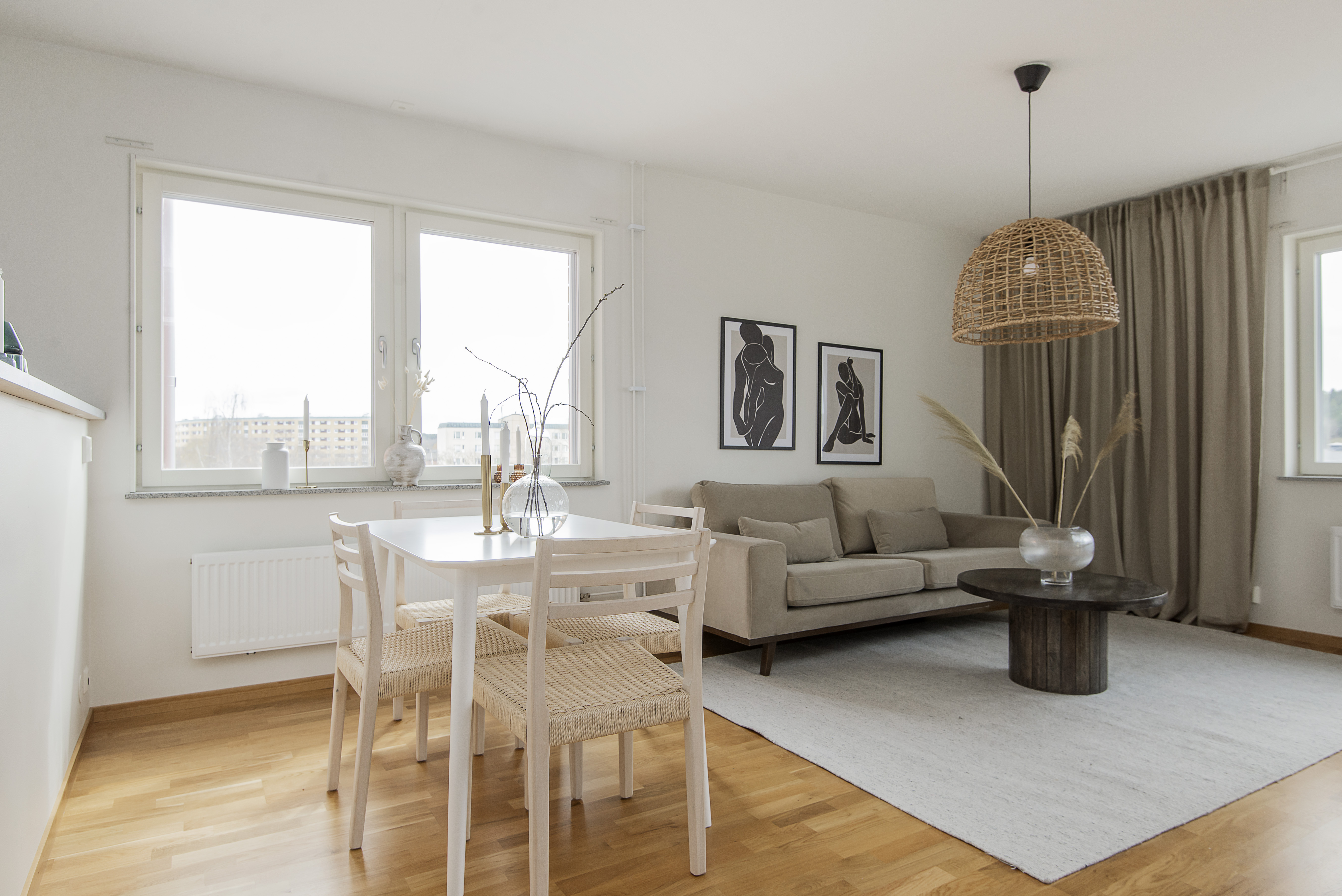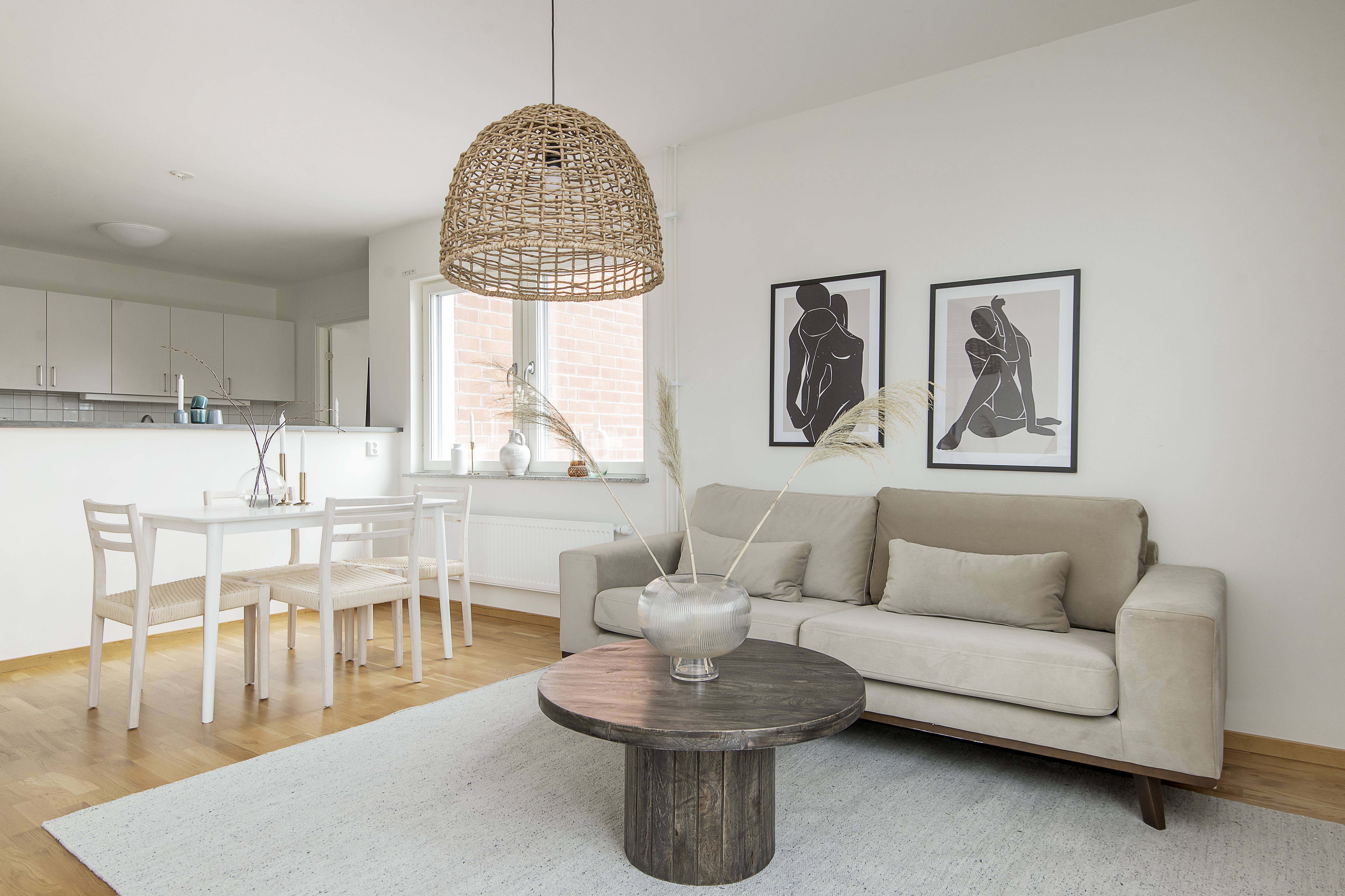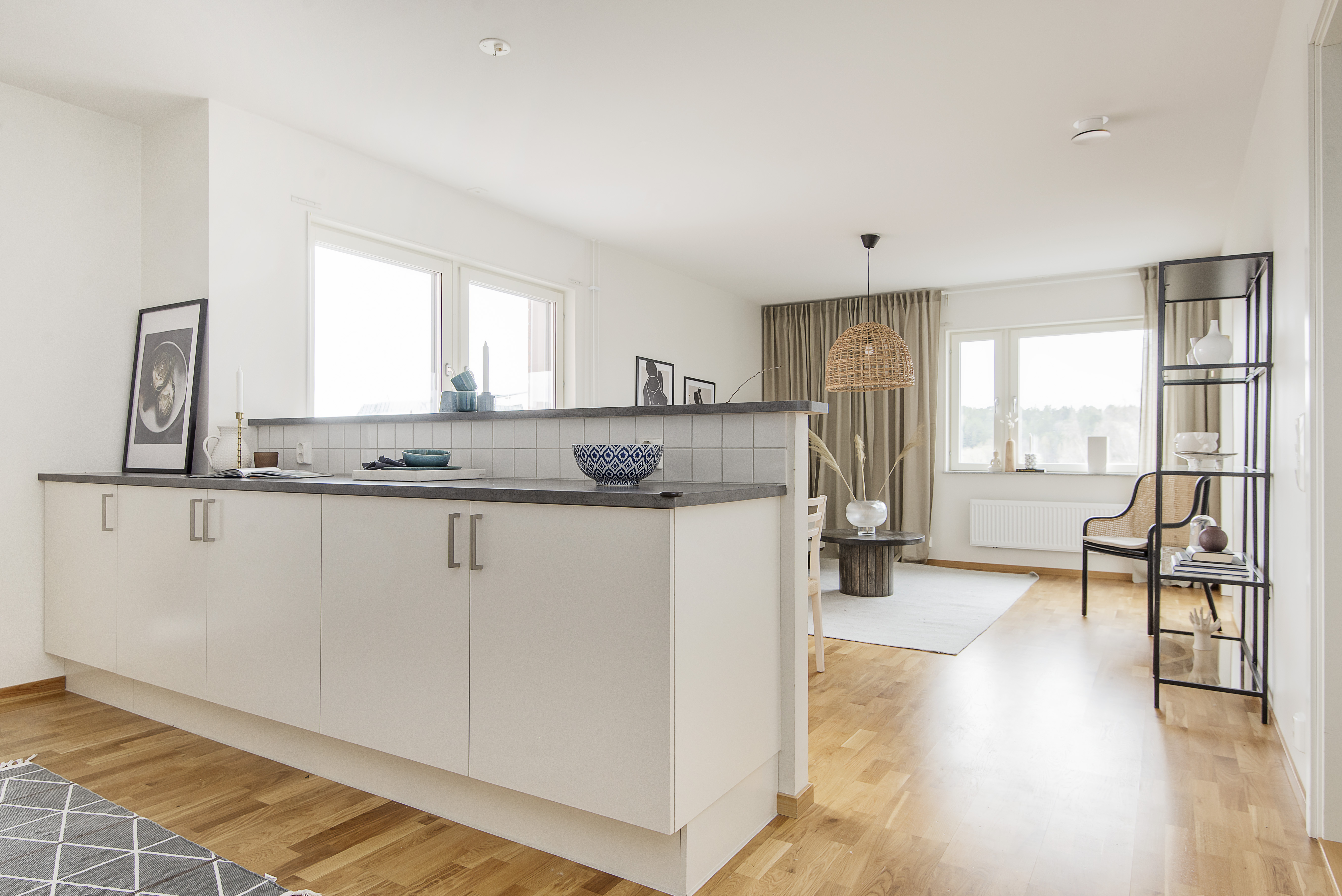 - Vardagsrum med öppen planlösning mot köket.