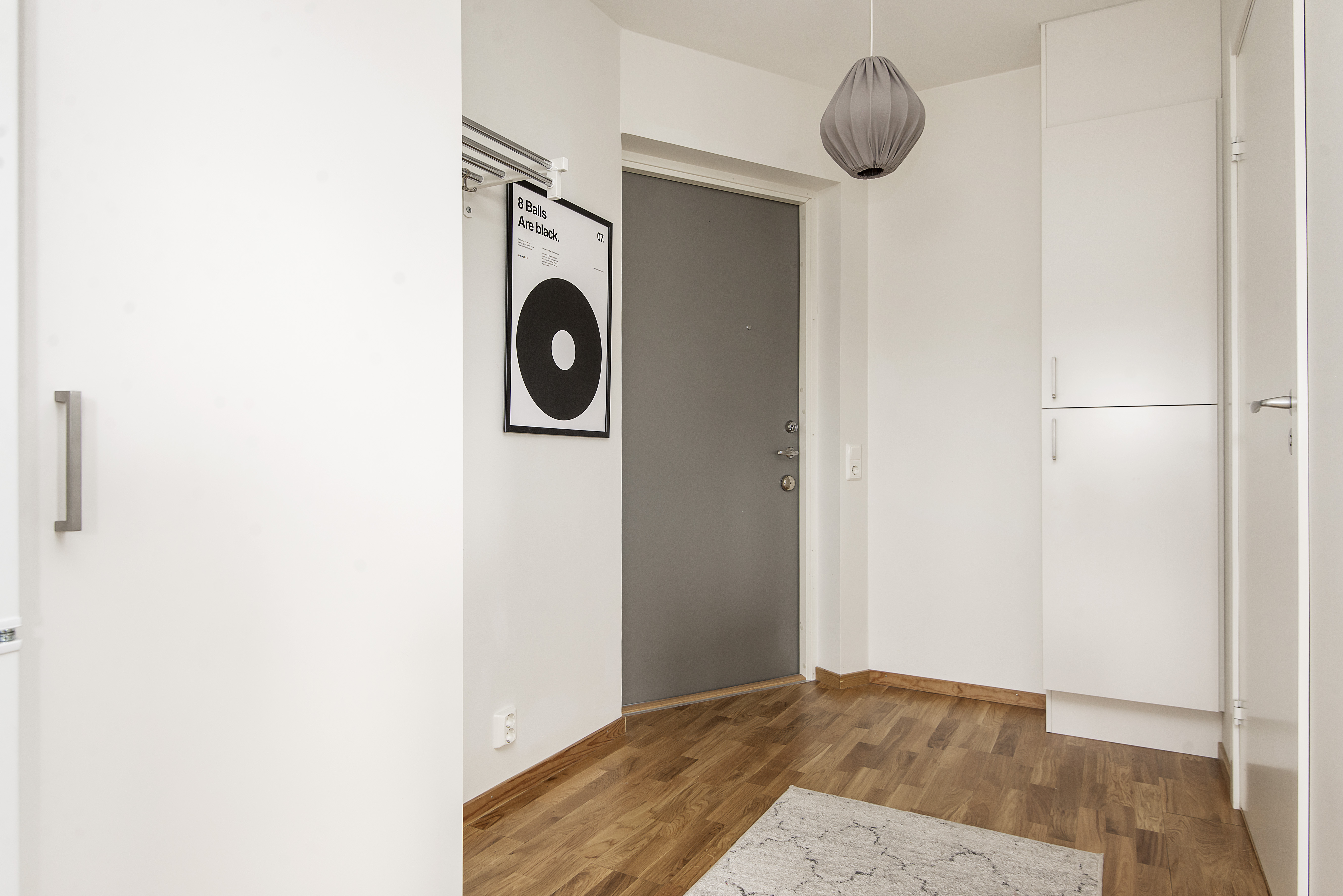 - Hall med säkerhetsdörr och bra förvaring i form av garderober.