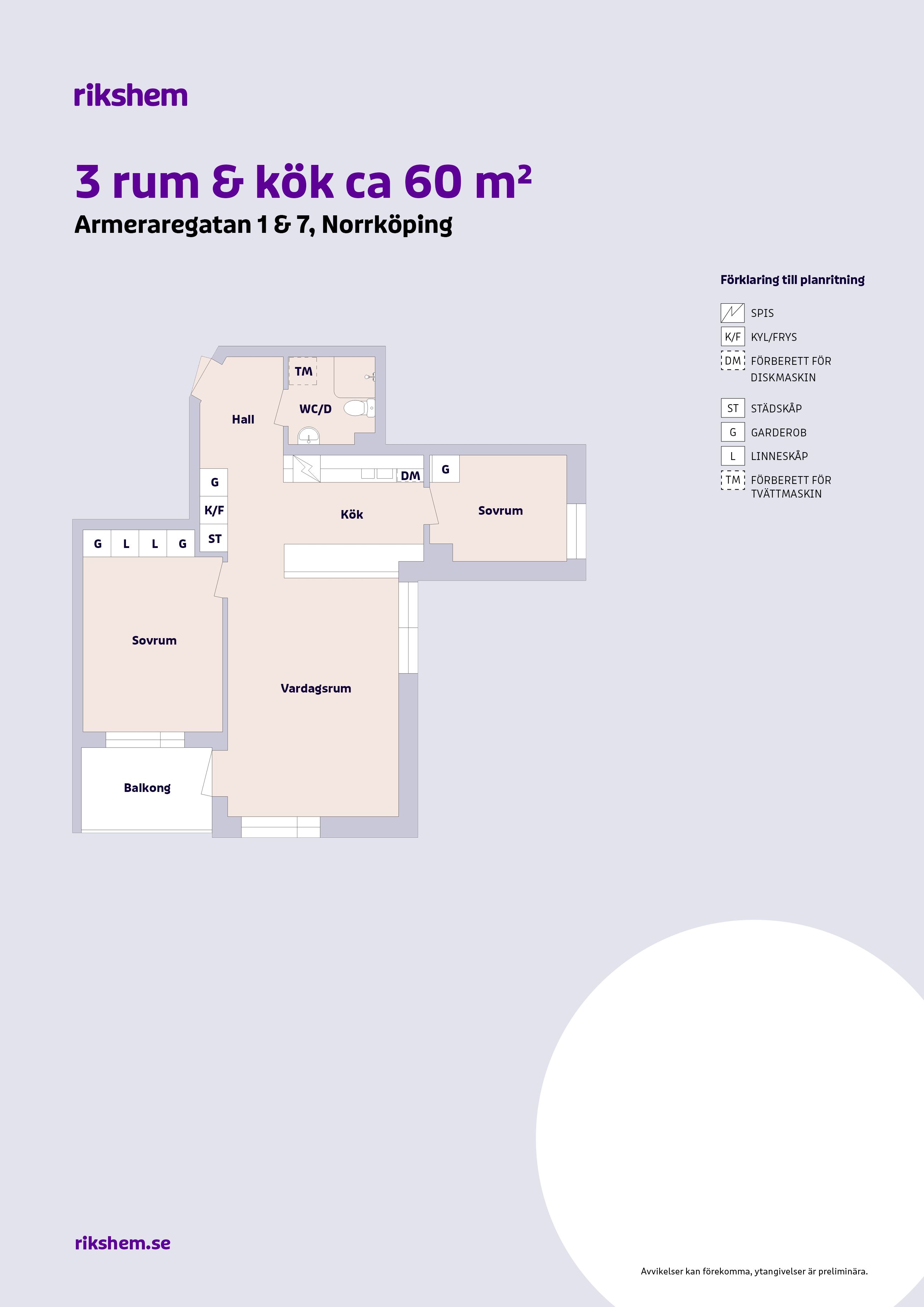 Rikshem reserverar sig mot eventuella fel eller avvikelser som kan förekomma i lägenhetsannonsen eller i planritningen.