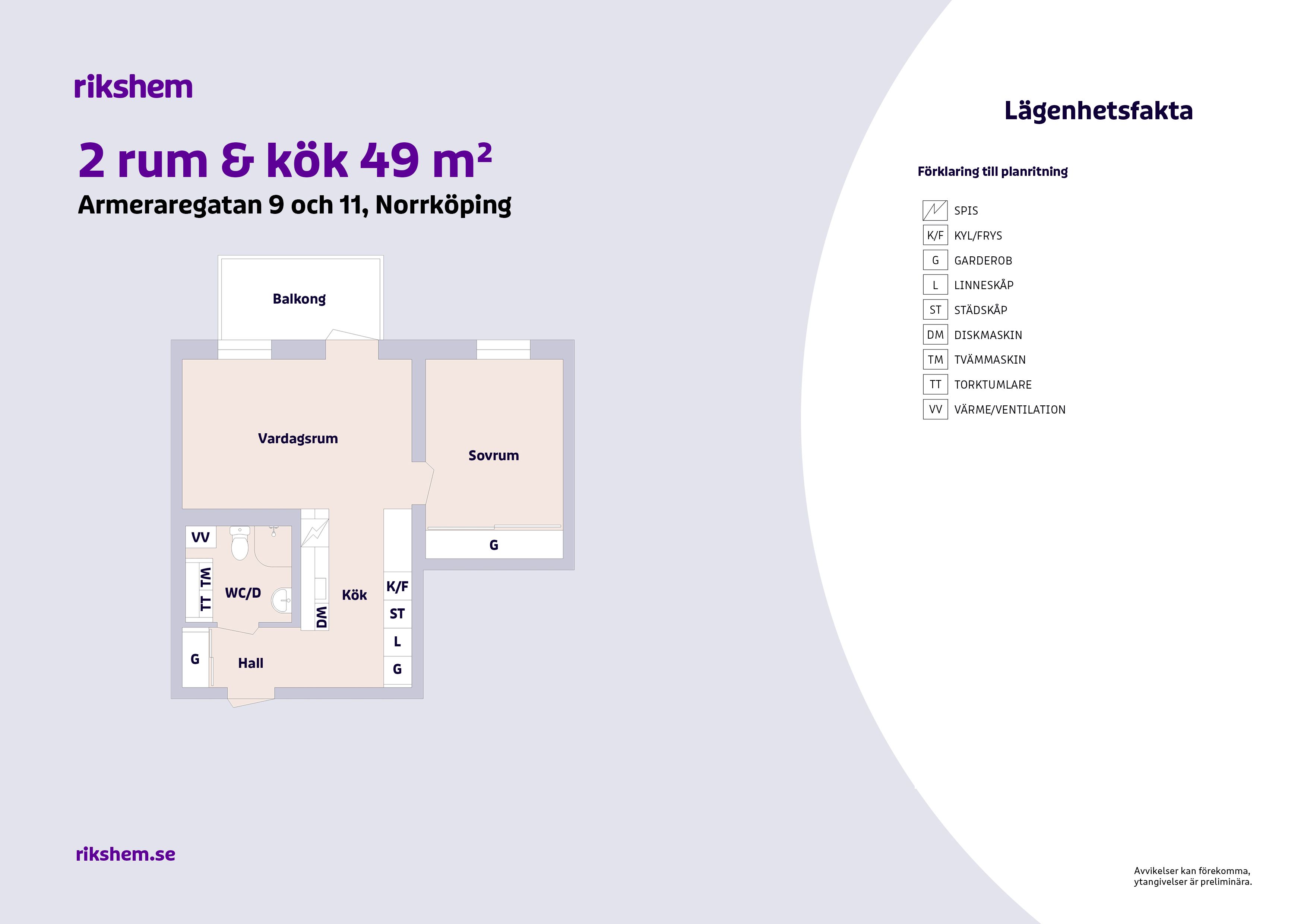 Rikshem reserverar sig mot eventuella fel eller avvikelser som kan förekomma i lägenhetsannonsen eller i planritningen.