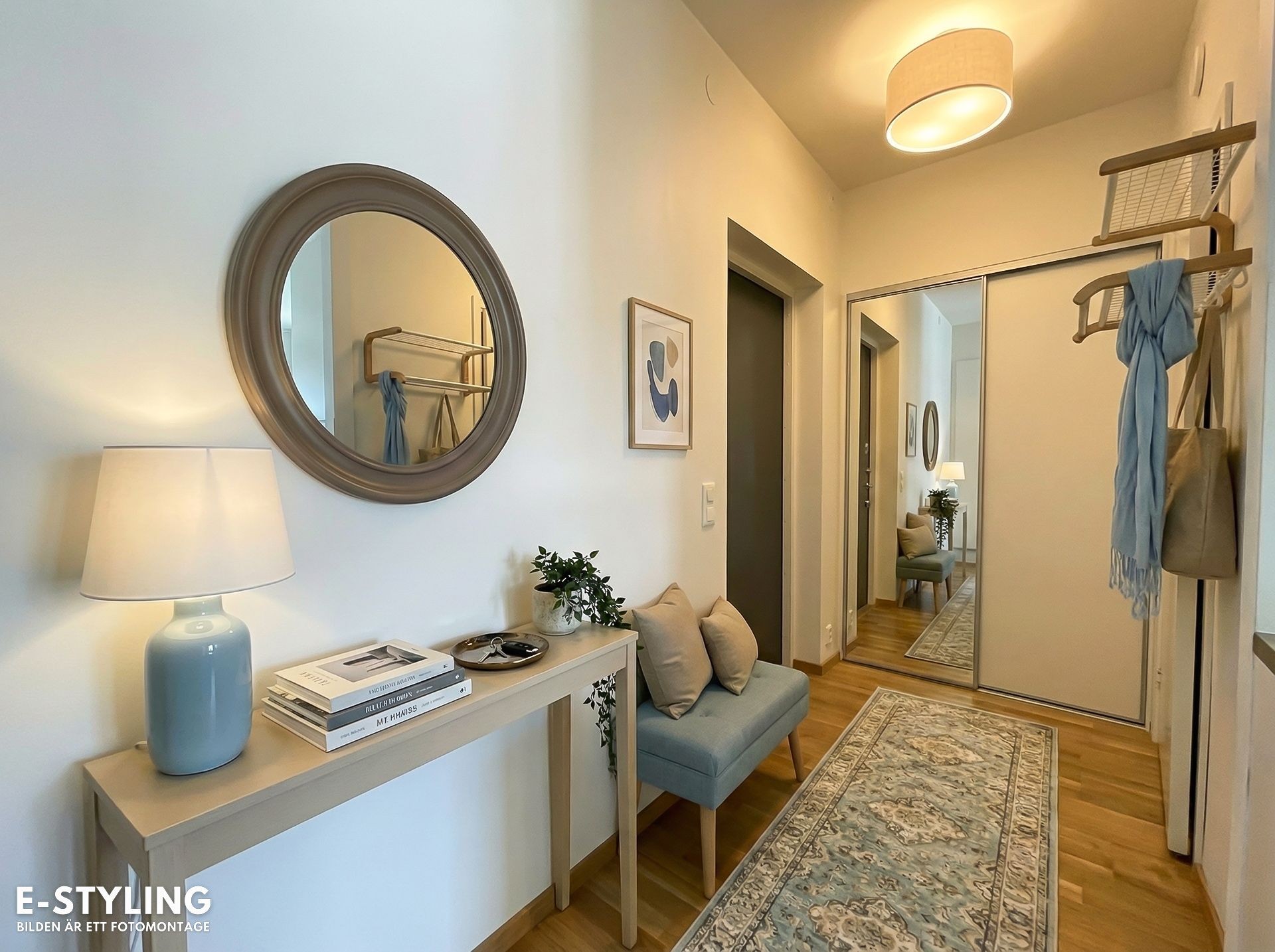 I hallen finns en stor garderob med skjutdörrar samt ytterligare förvaring mellan hall och kök.