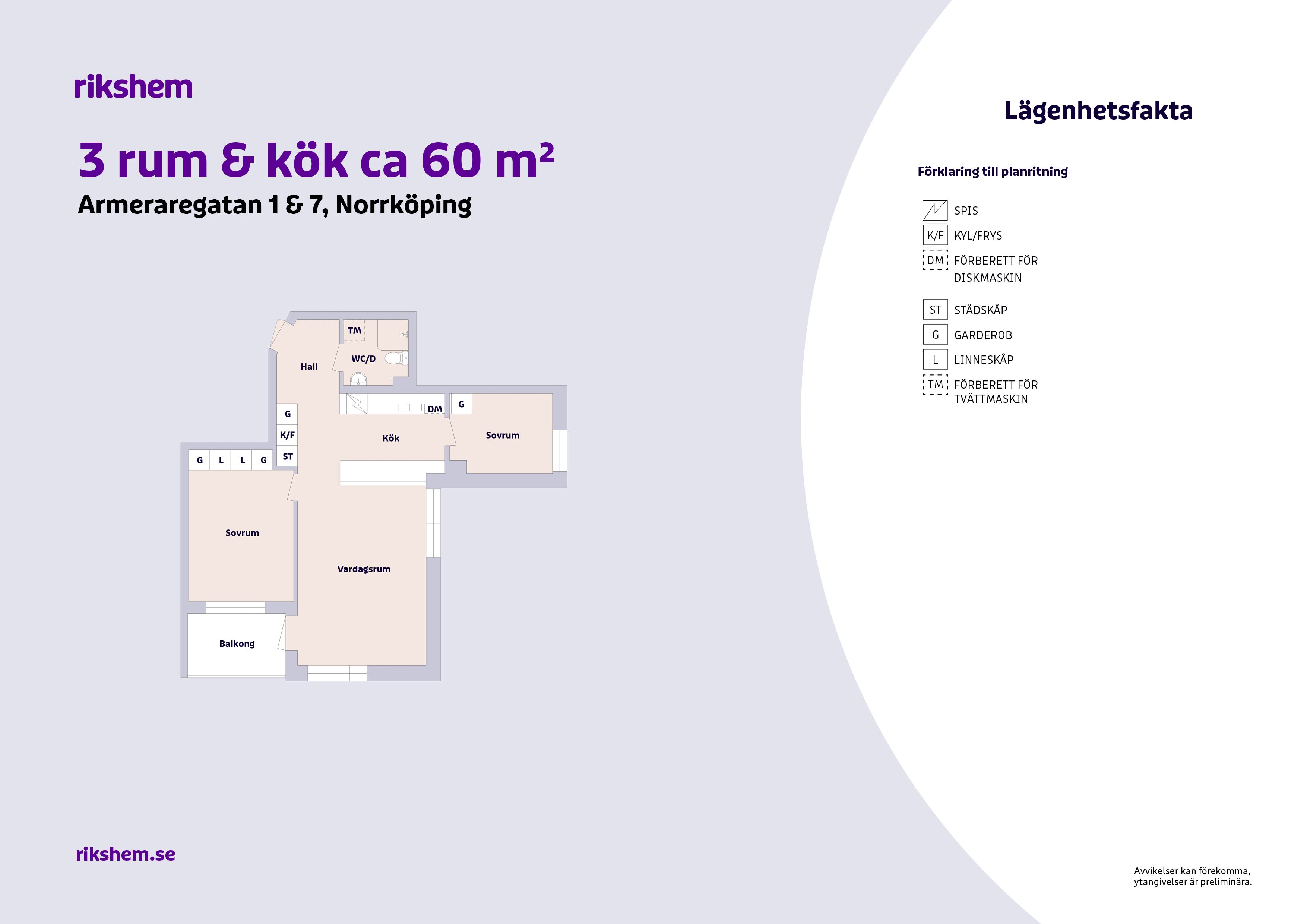 Rikshem reserverar sig mot eventuella fel eller avvikelser som kan förekomma i lägenhetsannonsen eller i planritningen.