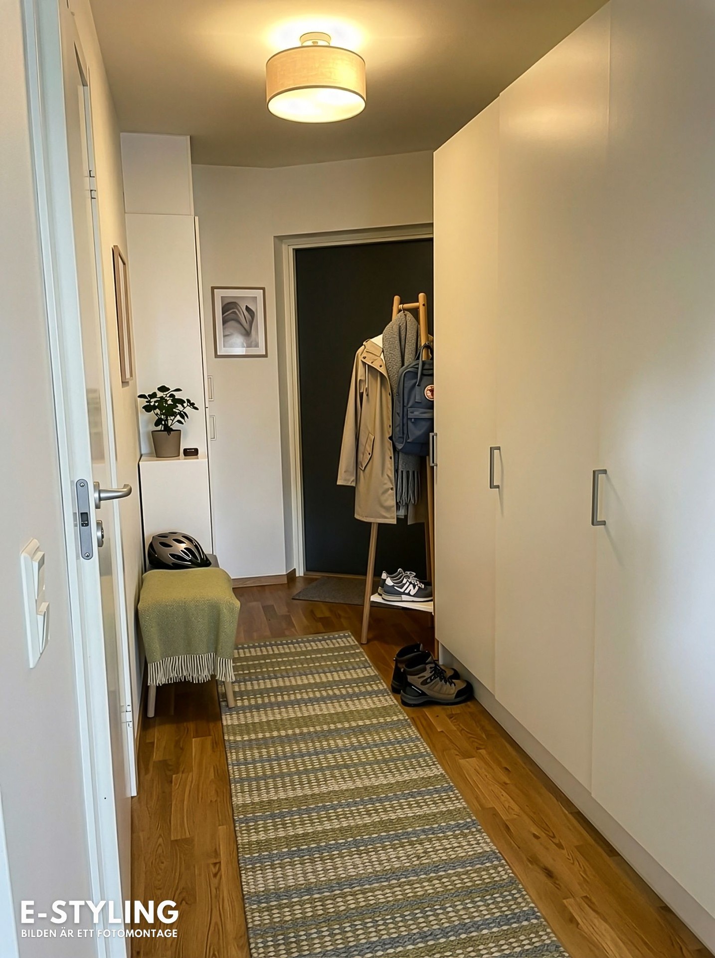 - Hall med säkerhetsdörr och bra förvaring i form av garderober.