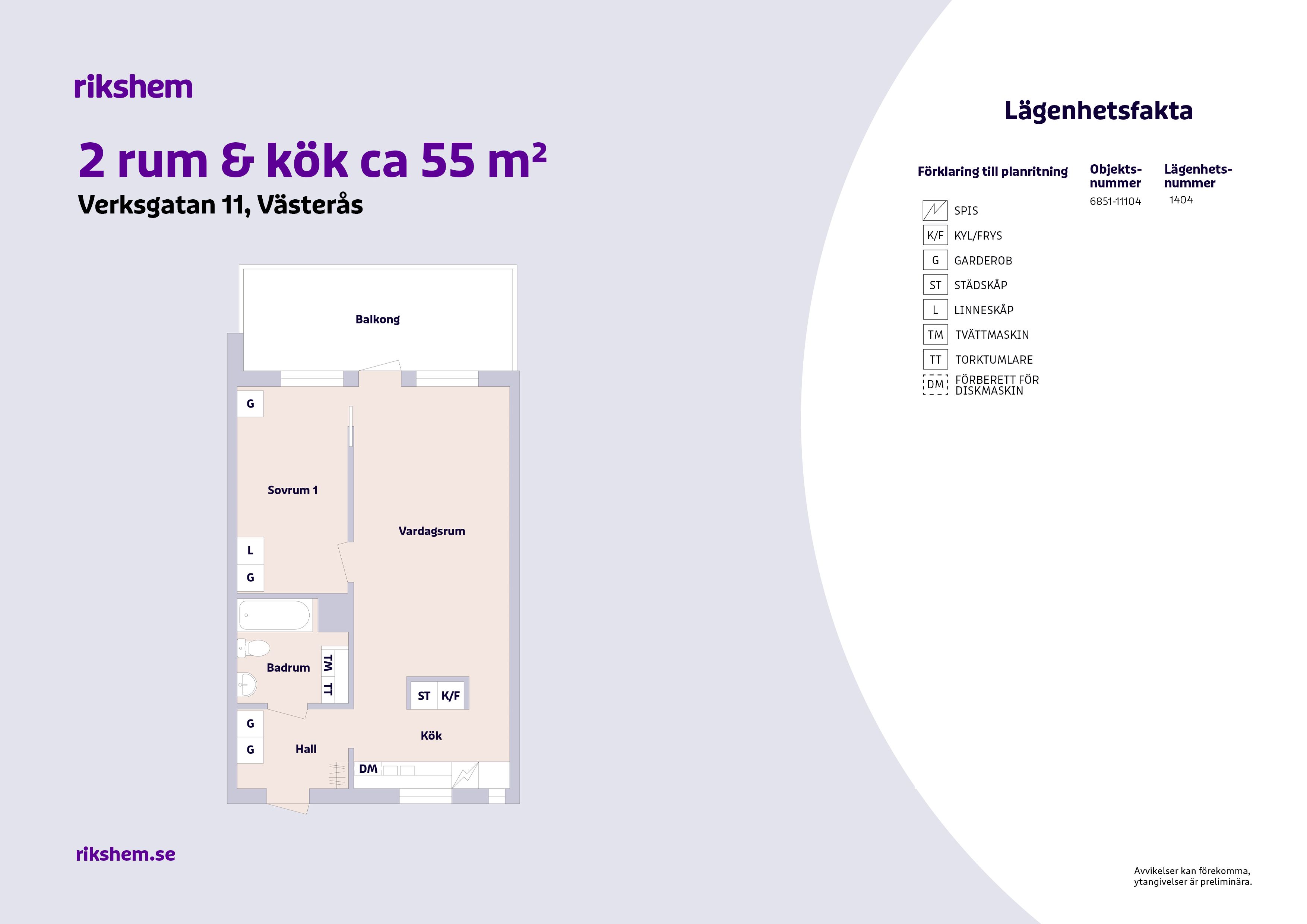 Rikshem reserverar sig mot eventuella fel eller avvikelser som kan förekomma i lägenhetsannonsen eller i planritningen.