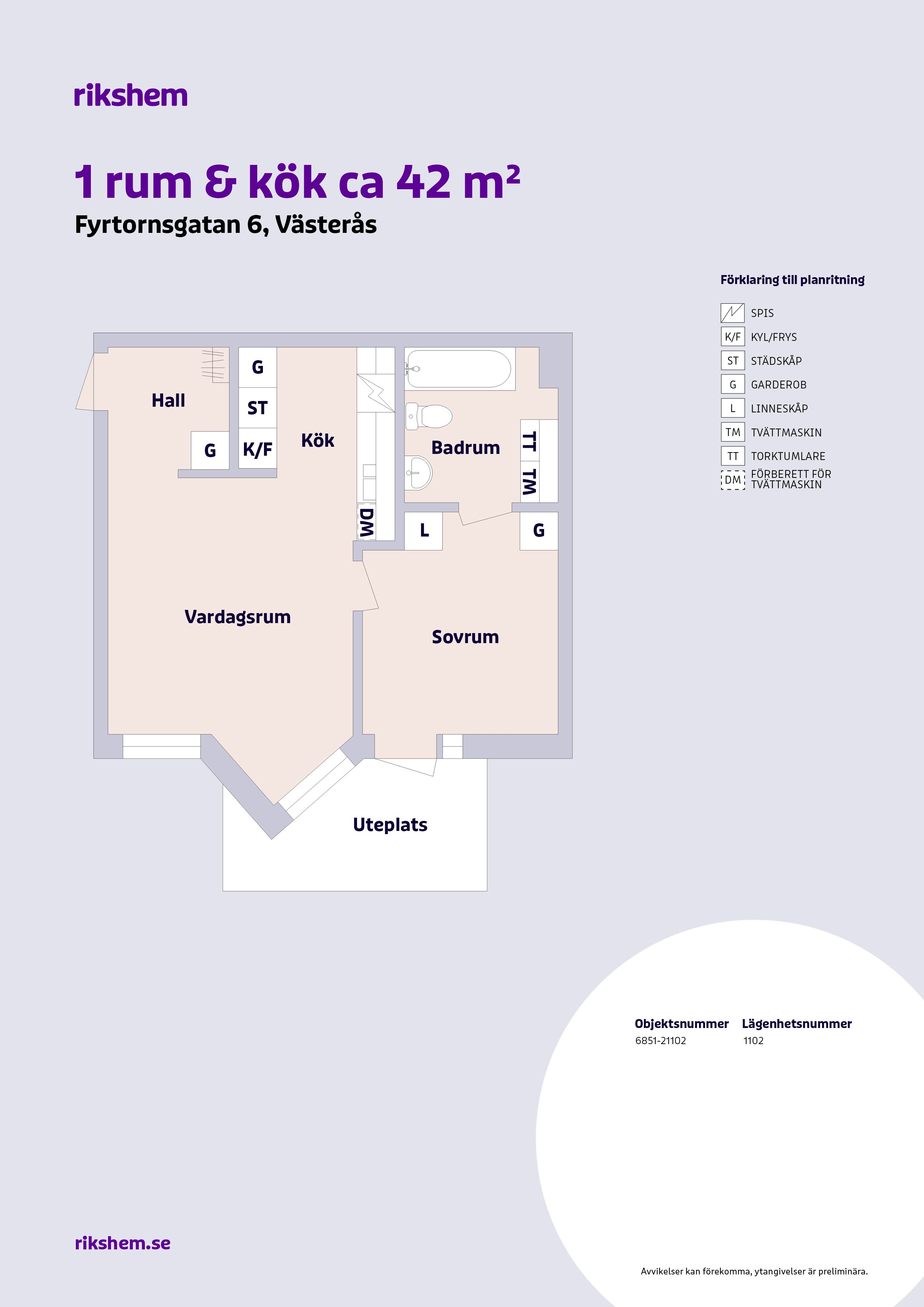 Rikshem reserverar sig mot eventuella fel eller avvikelser som kan förekomma i lägenhetsannonsen eller i planritningen.