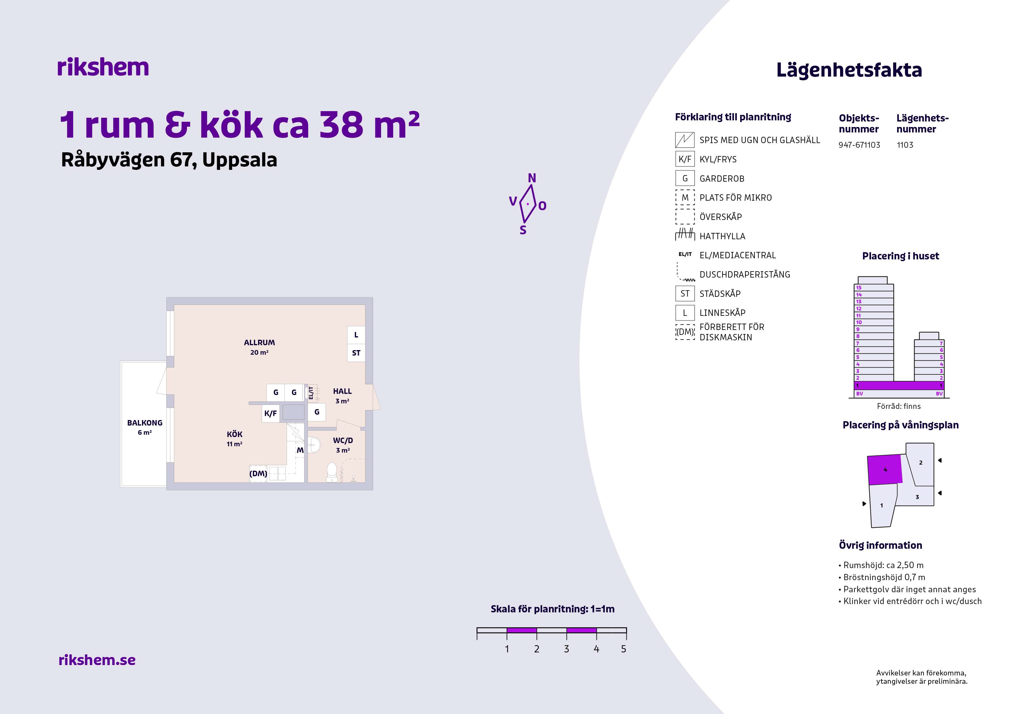 Rikshem reserverar sig mot eventuella fel eller avvikelser som kan förekomma i lägenhetsannonsen eller i planritningen.